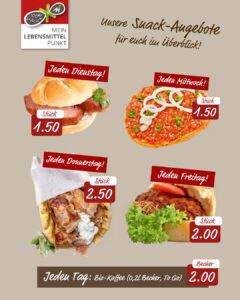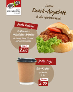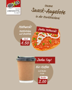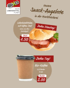 Snack-Angebote in der Marktbäckerei – Mettbrötchen