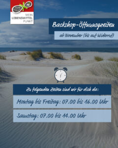 Backshop-Öffnungszeiten ab November (bis auf Widerruf!)